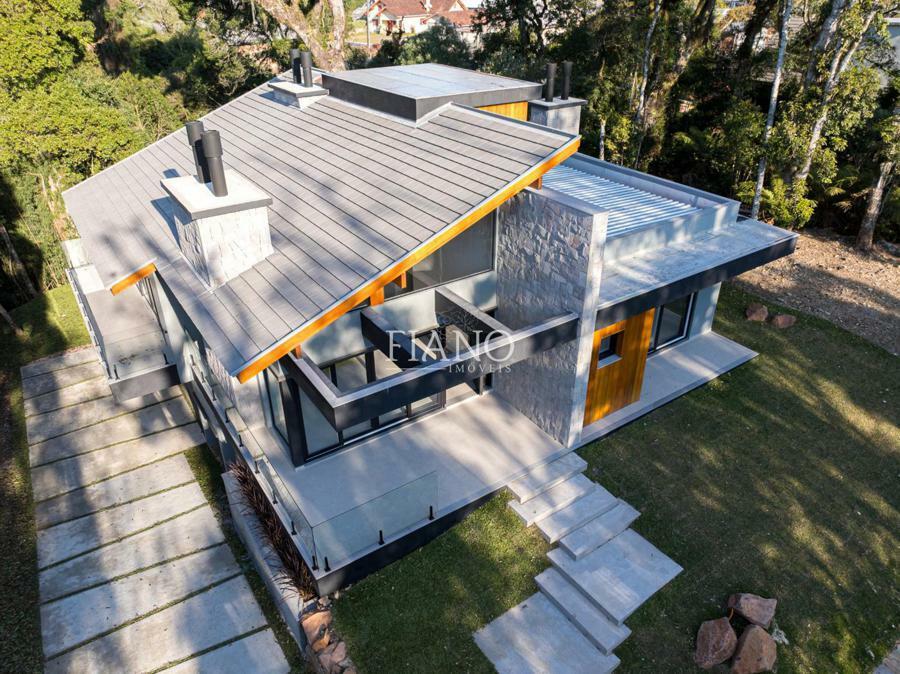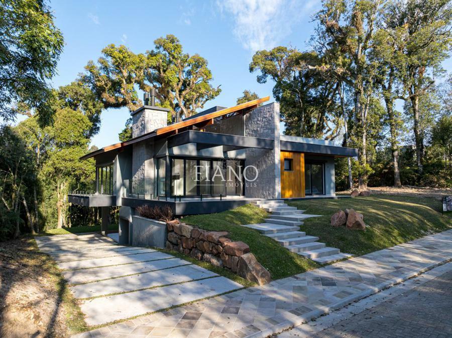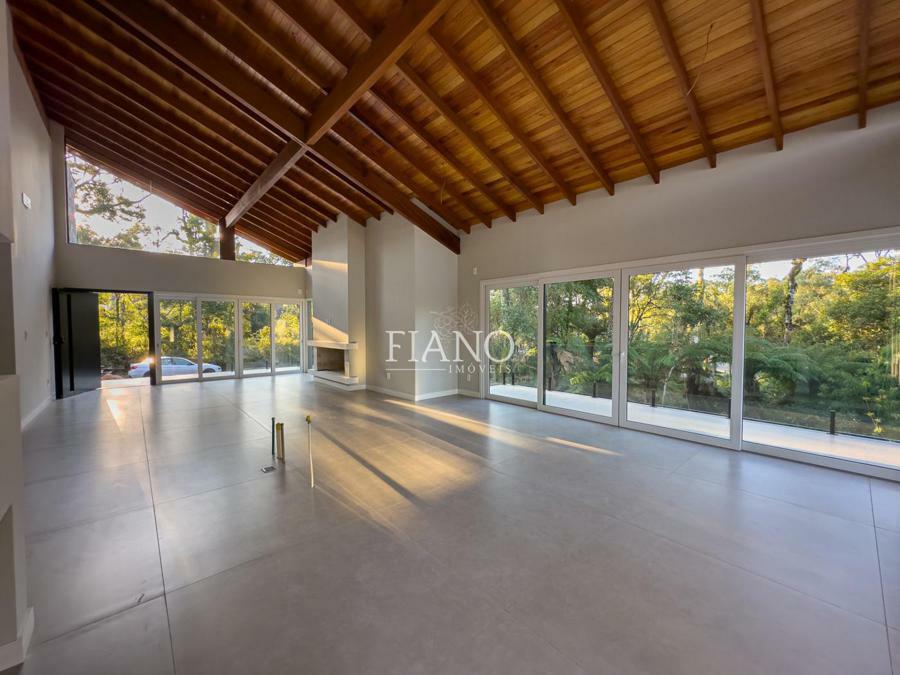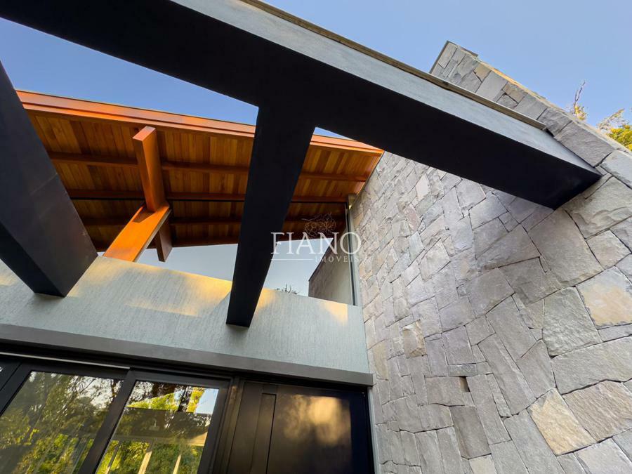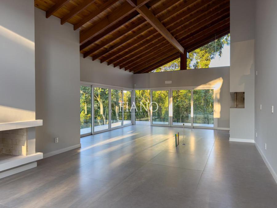 No térreo, living 2 ambientes em conceito aberto com pé direito elevado e amplas esquadrias com vidros duplos. Lareira e piso aquecido em toda a casa garantem o conforto térmico nos dias frios. O destaque fica para a cozinha com churrasqueira e espera para fogão campeiro rodeada pela varanda com vista para o verde, além de 3 amplas suítes.