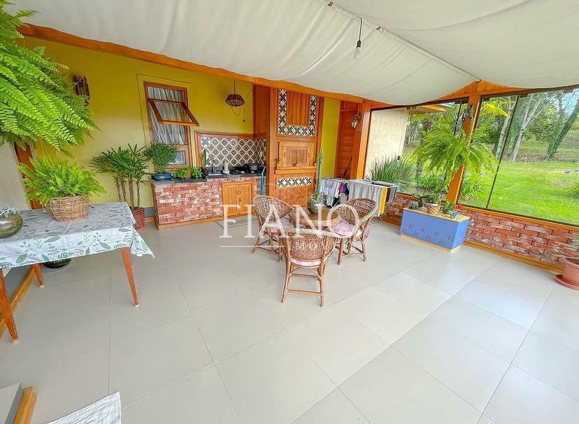A casa possui esquadrias em madeira em todos os ambientes e fica totalmente mobiliada.