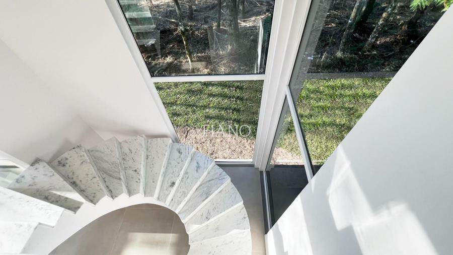 As aberturas em PVC com vidros duplos garantem um ambiente silencioso e conectado à natureza. Com persianas automatizadas, piso vinílico e porcelanato, rebaixo em gesso e esperas para calefação, água quente e split, a Casa Sol tem tudo o que você precisa para viver bem. Ah, e ainda conta com elevador e piso aquecido em todo o térreo e banheiros!