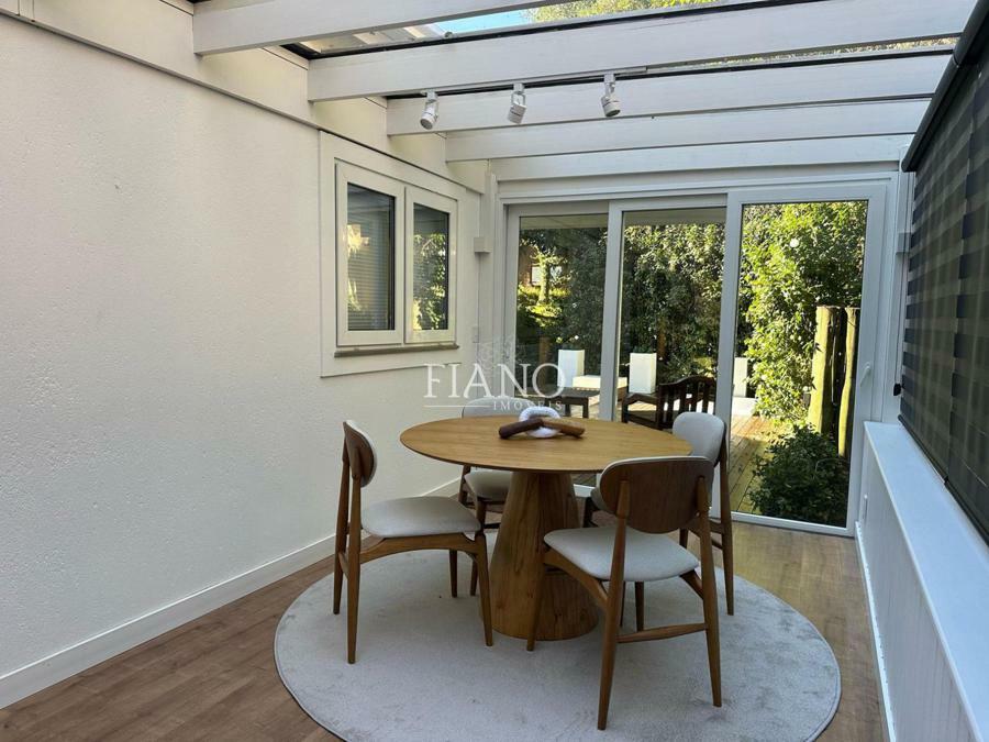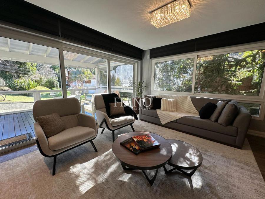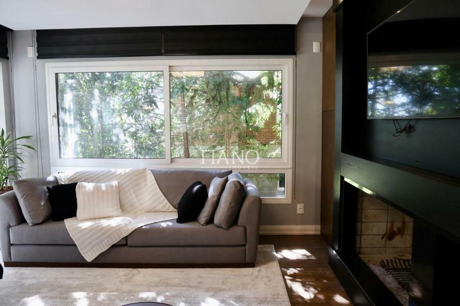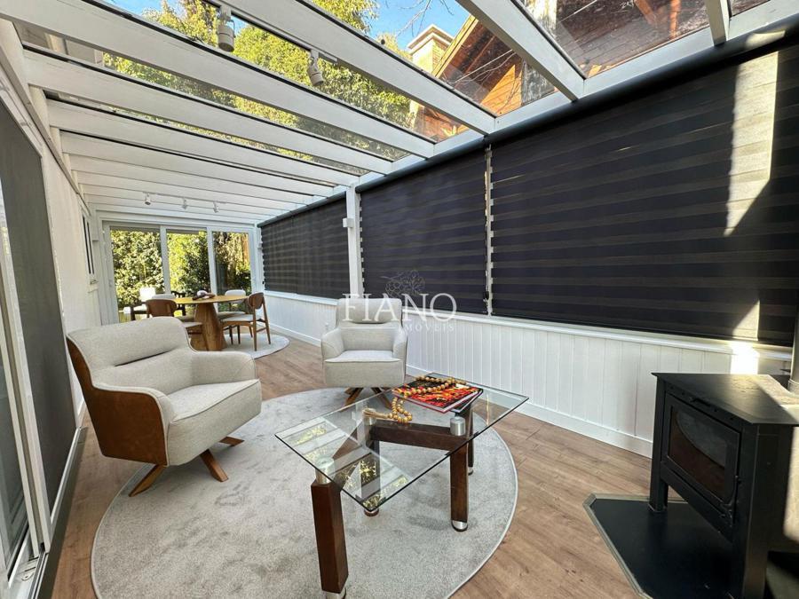 A sala de estar e jantar tem aquele clima aconchegante, com lareira e um teto rebaixado em gesso que traz um toque especial. E para aproveitar os dias ensolarados, você pode se deleitar no deck externo em frente ao jardim ou relaxar no solarium fechado, que também conta com uma lareira quentinha!