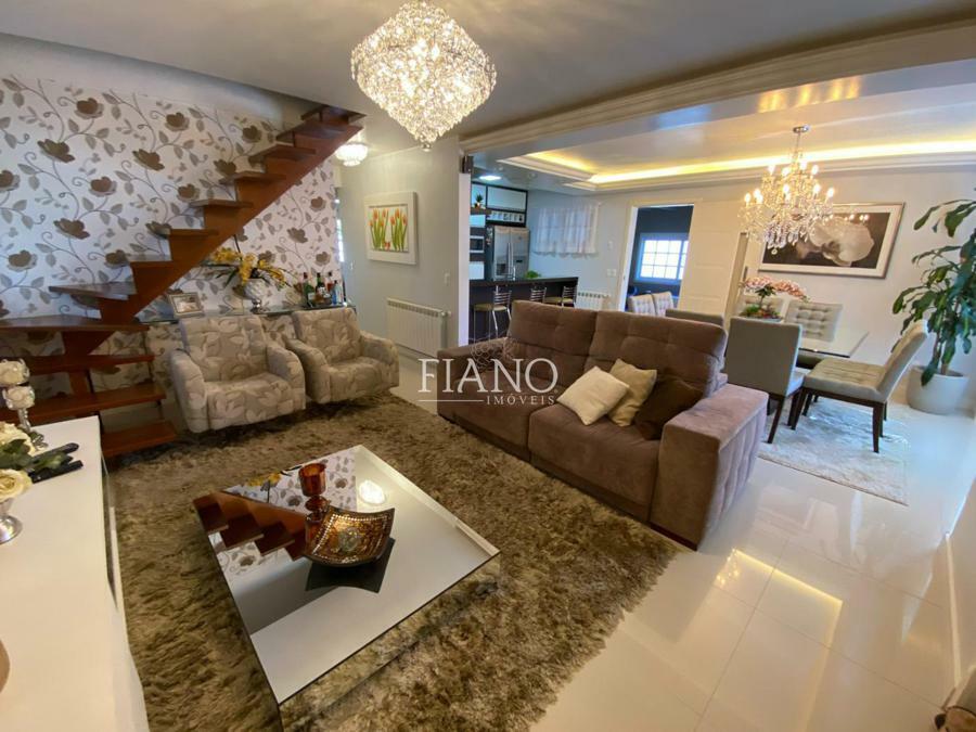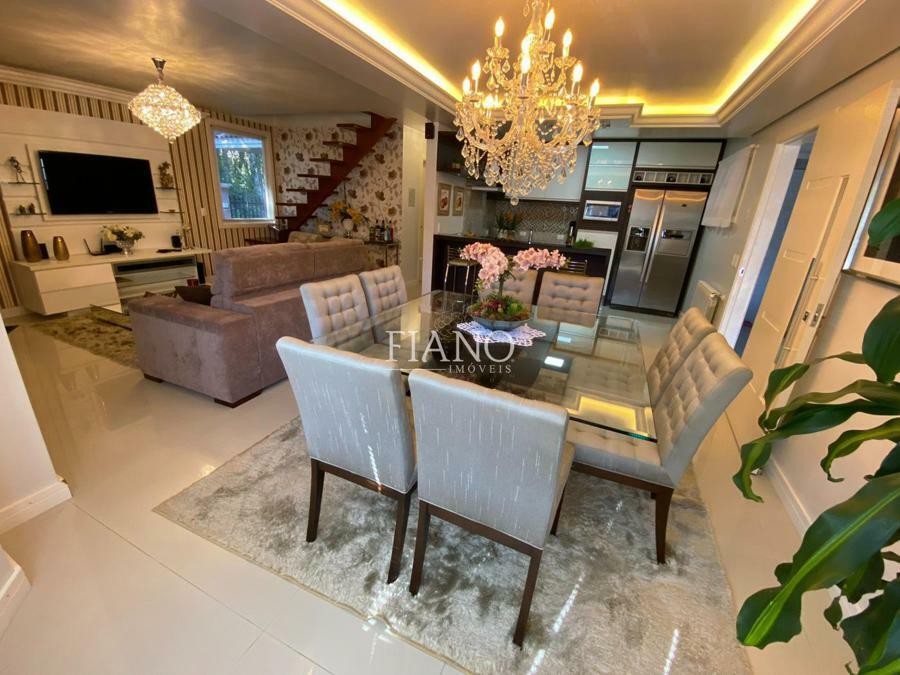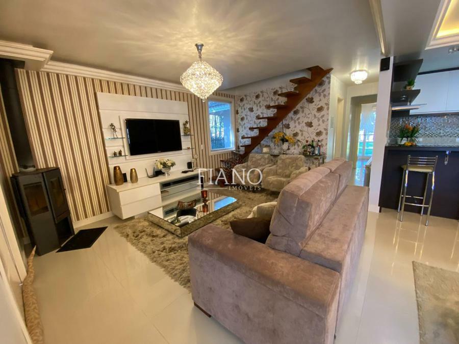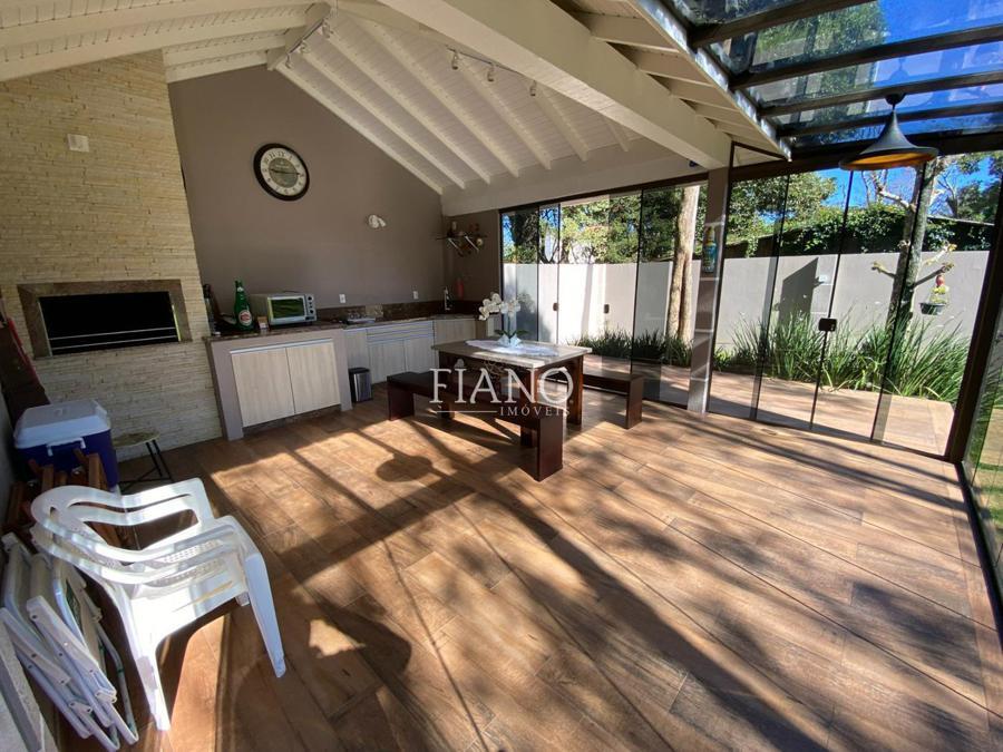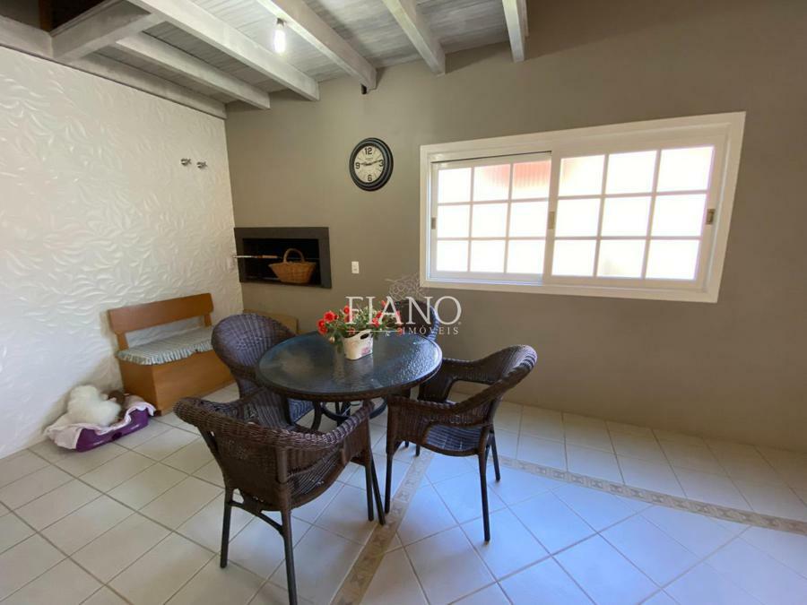São 03 dormitórios (01 suíte master com hidro e closet), sala estar e jantar com lareira, cozinha americana, garagem fechada com portão eletrônico, churrasqueira e mezanino, 02 banheiros sociais, lavandeira.