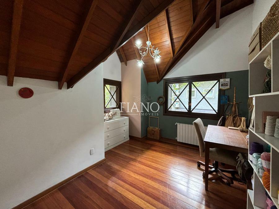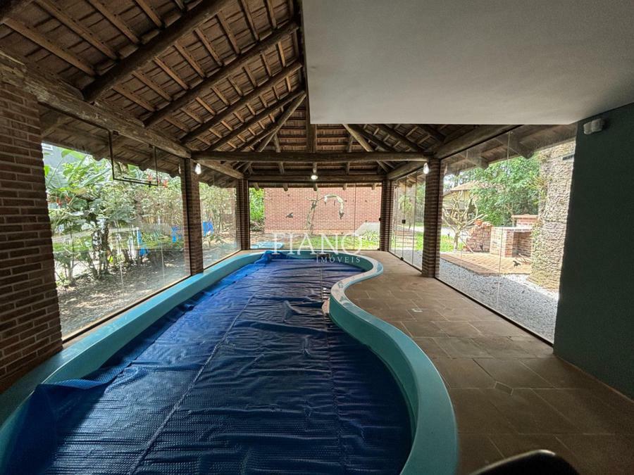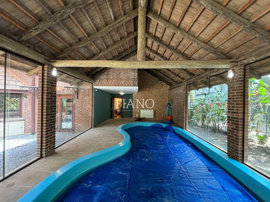 Casa distribuída em 04 dormitórios (03 suítes, sendo uma master com closet), living com lareira, uma ampla cozinha com espaço gourmet com churrasqueira e forno para pizza, uma área externa com parrija, piscina aquecida coberta e 02 vagas de garagem.