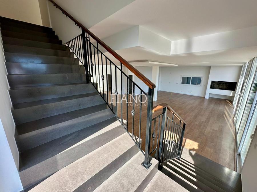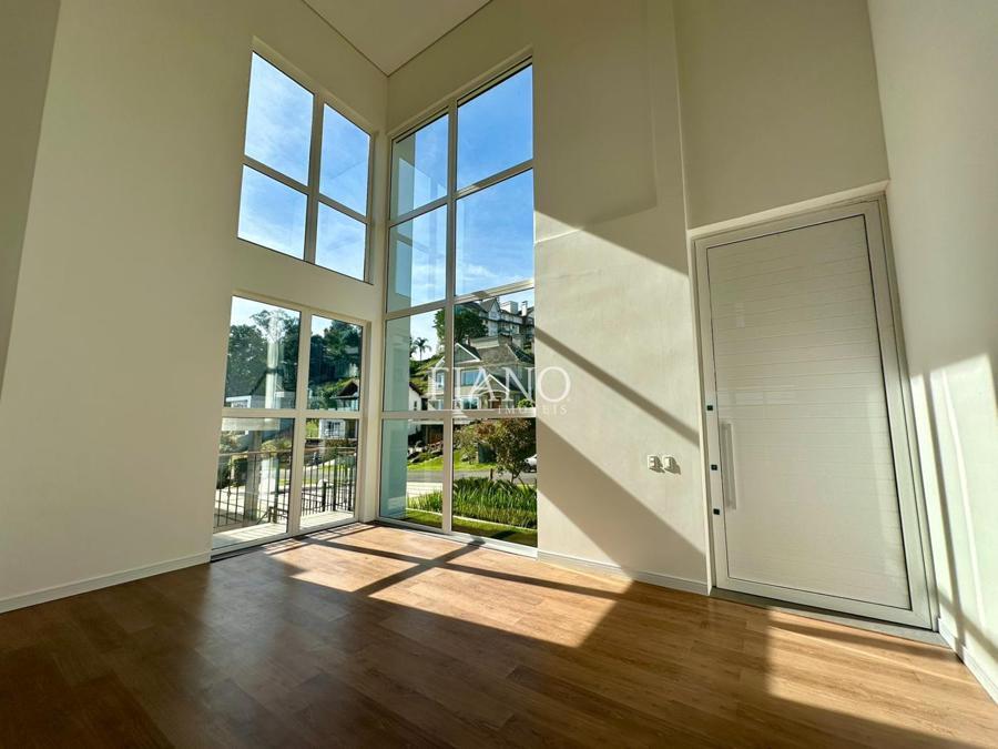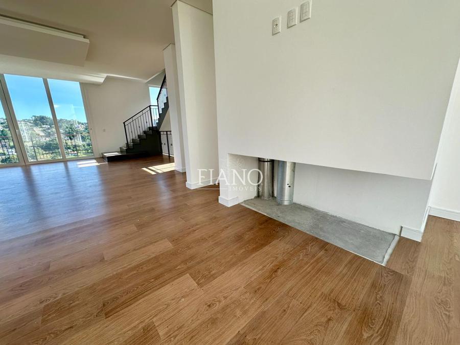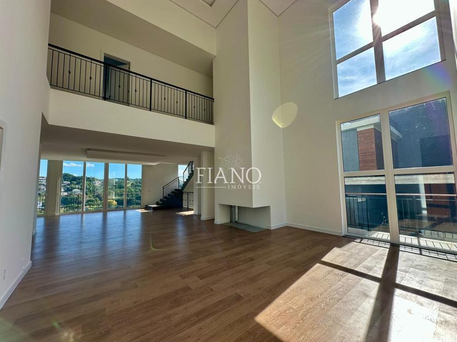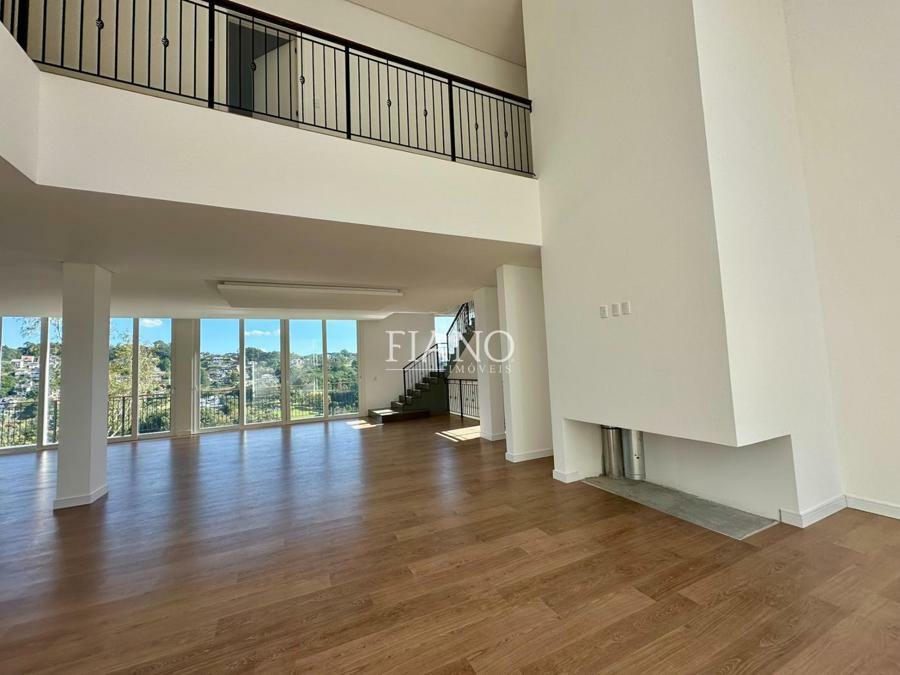 A sala de estar ampla, com muita iluminação natural, integrando todos ambientes com lareira e pé direito duplo, sala de jantar e a cozinha gourmet com churrasqueira, varanda com vista para vale e um lindo por do sol.