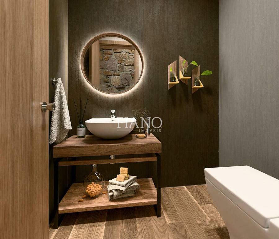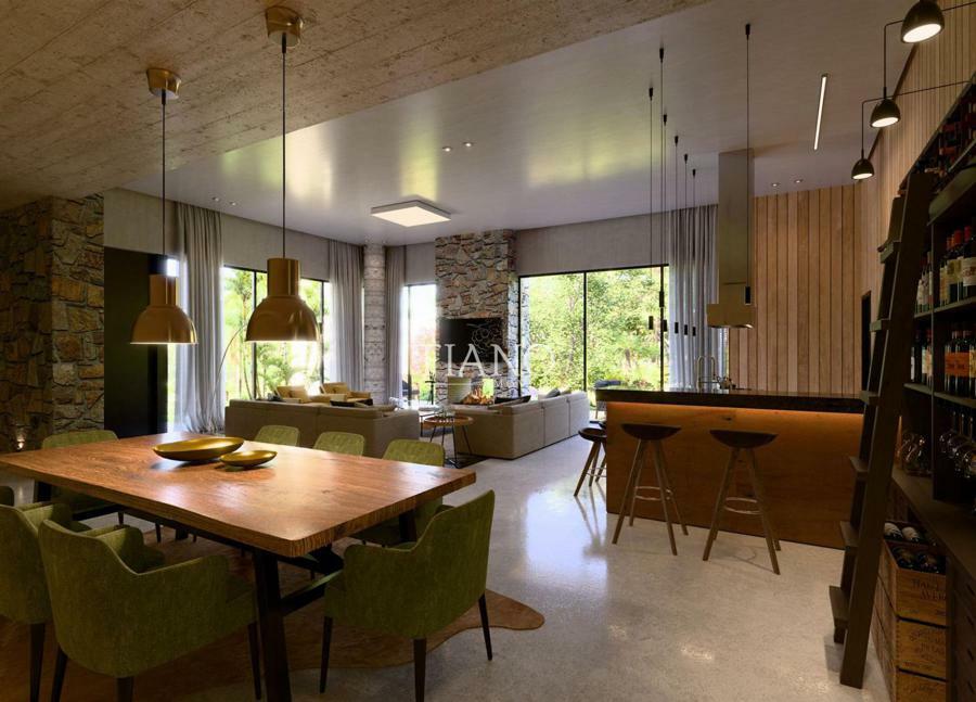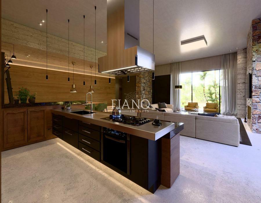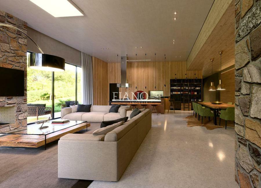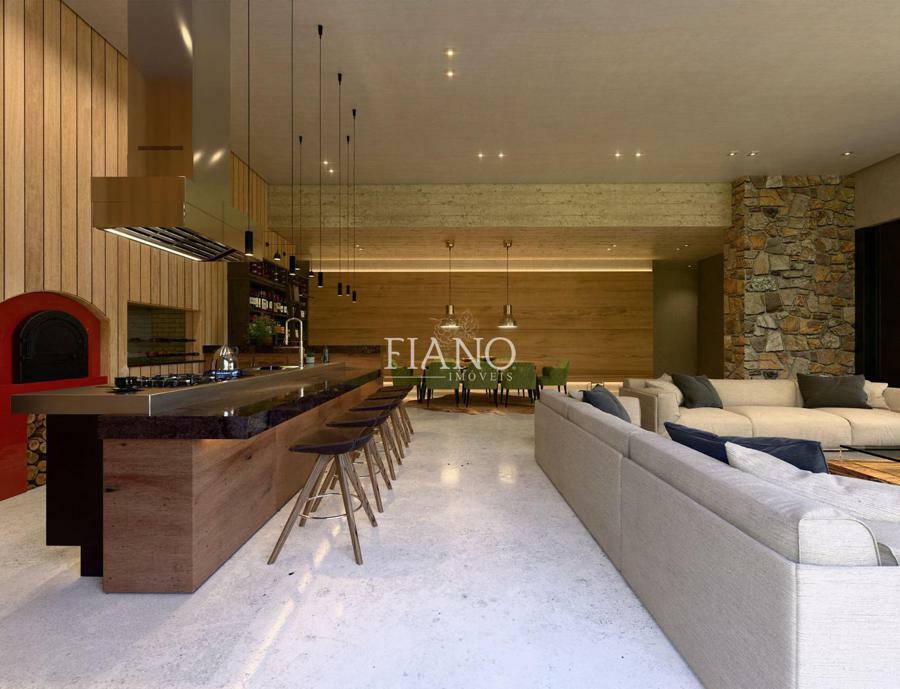 Residência com alto padrão construtivo, 04 suítes, lavabo, sala estar e jantar, cozinha, forno de pizza e parrilla, churrasqueira, lavanderia, banheiro social, home office, garagem para 2 carros, esperas para lareira, split e calefação.