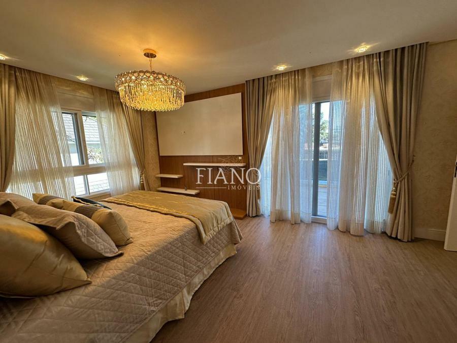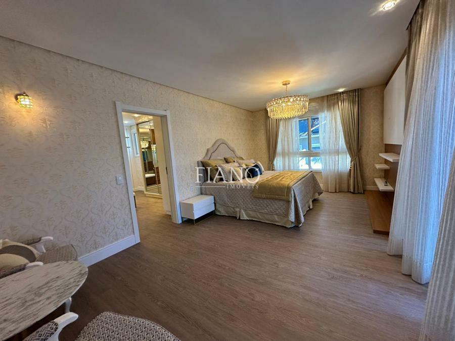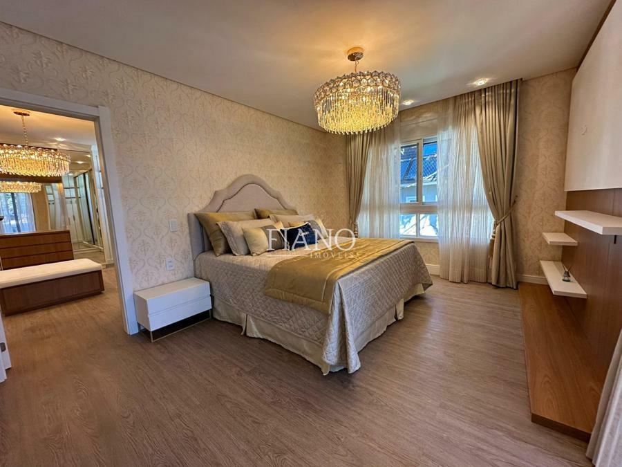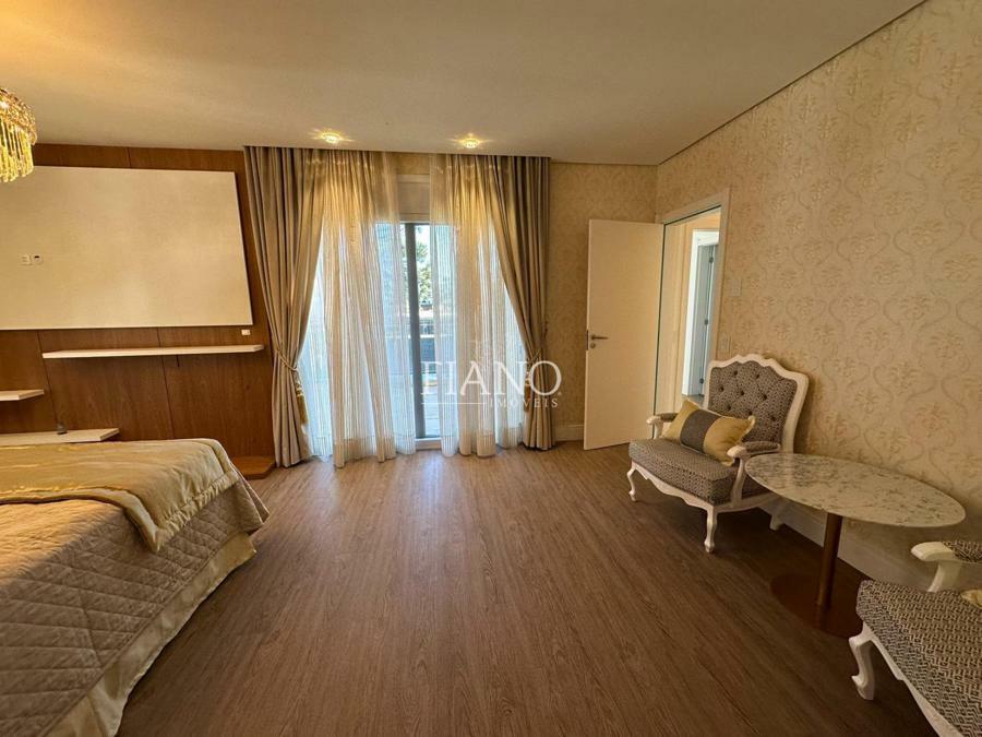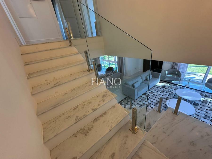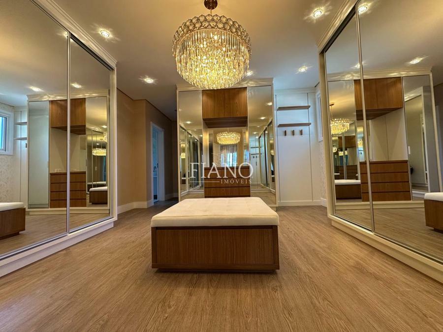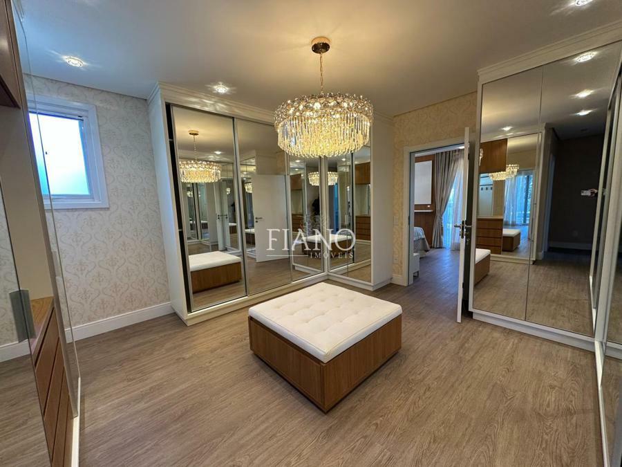 Residência com 371m², 5 suítes, sendo duas no pavimento térreo, suíte master com: closet, banhos separados para ele e ela, banheira de imersão no quarto e sacada.