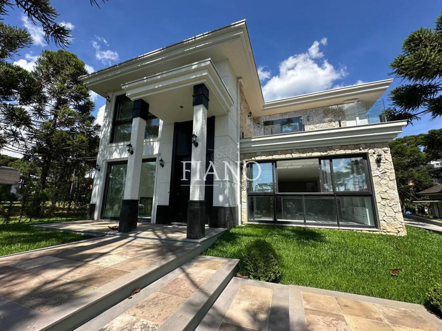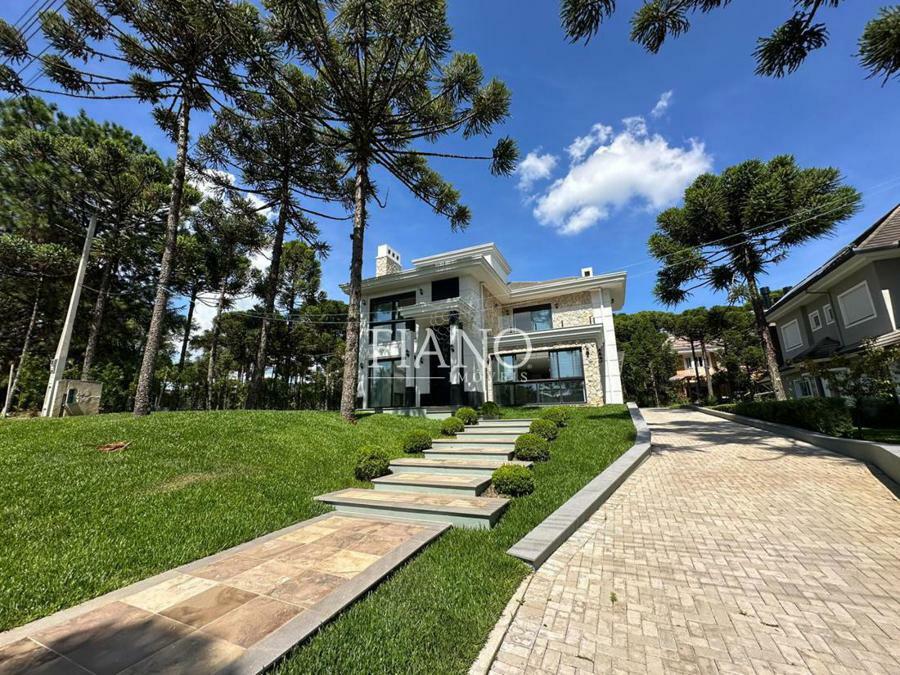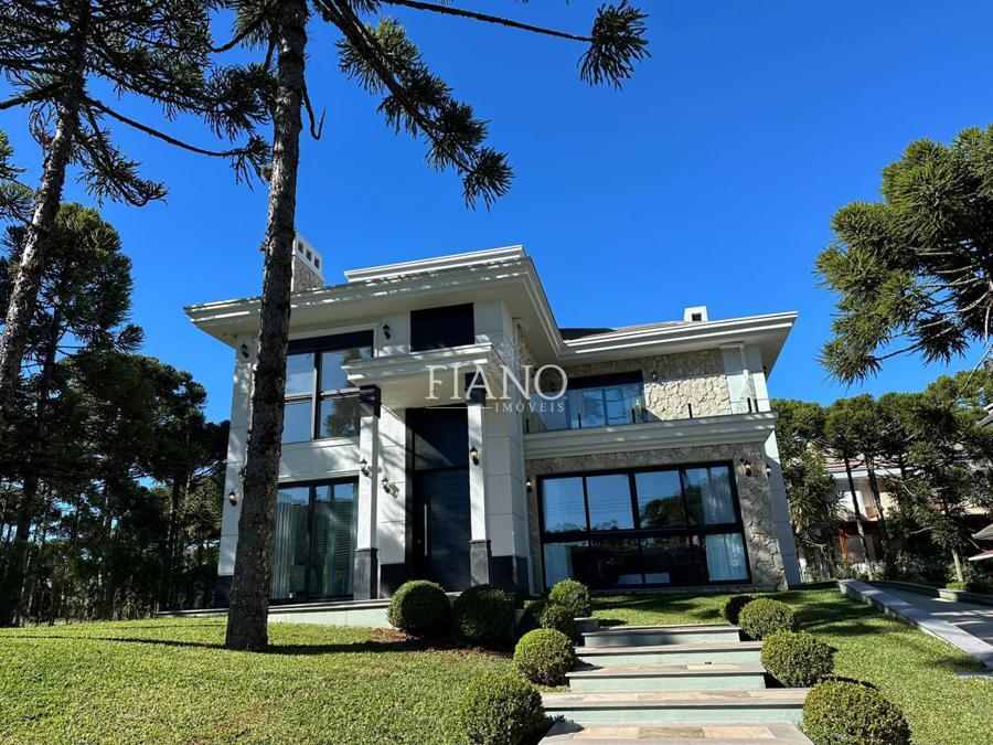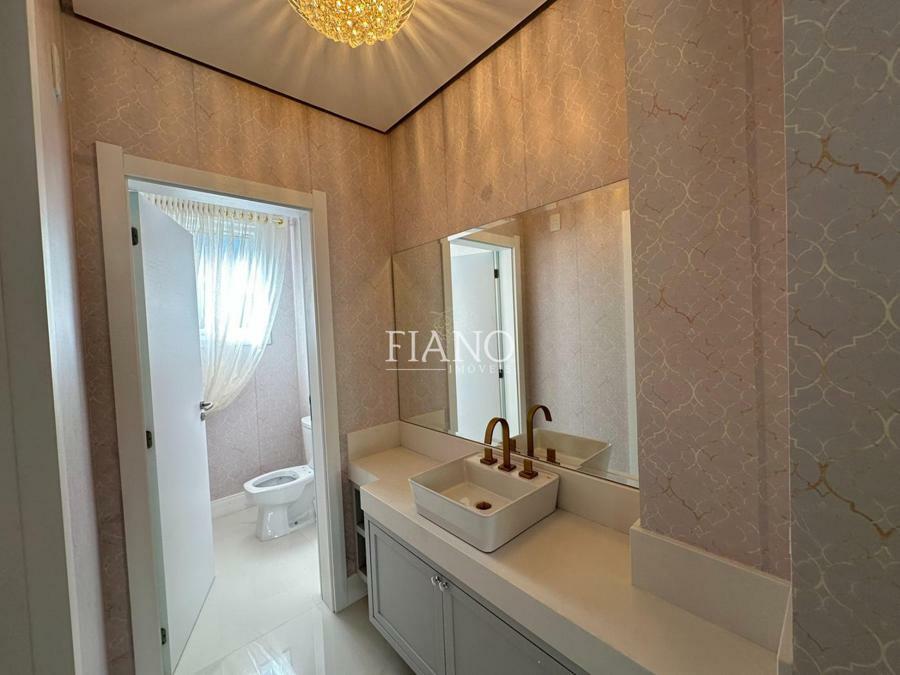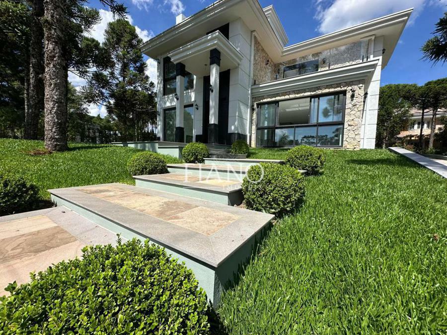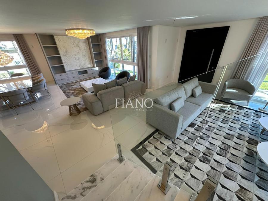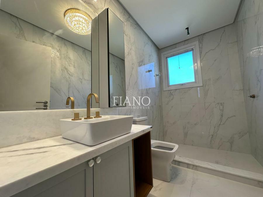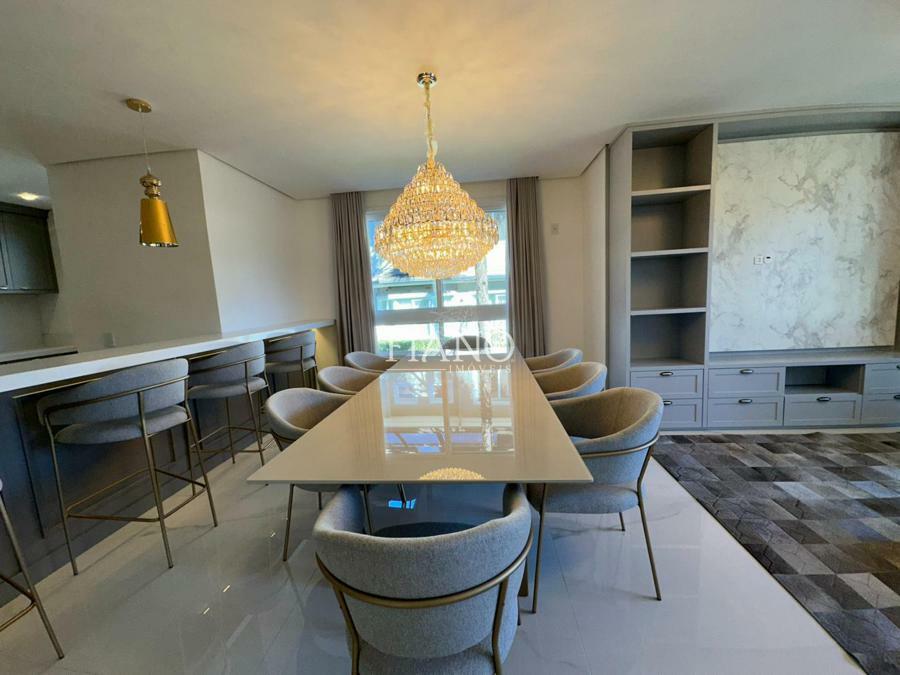 Residência com 371m², 5 suítes, sendo duas no pavimento térreo, suíte master com: closet, banhos separados para ele e ela, banheira de imersão no quarto e sacada.