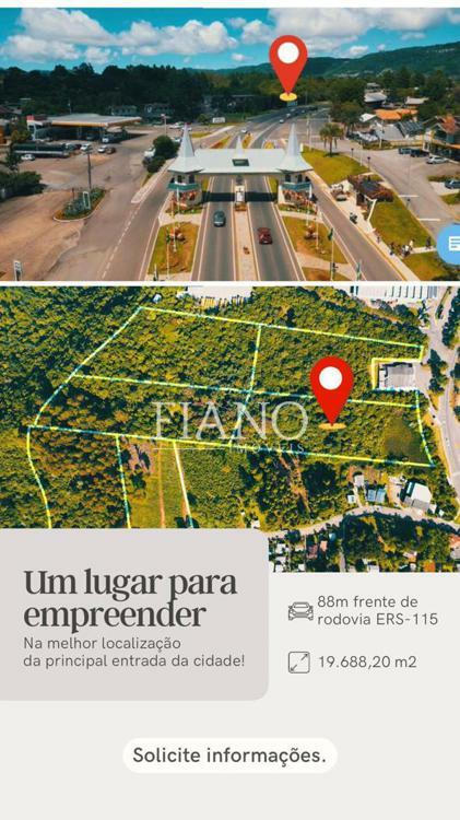Área plana, 100% urbana, 88m de extensão frente à rodovia ERS-115 (principal acesso de Gramado), com o melhor índice construtivo (IA2) junto à principal obra viária do município (viaduto), com vista frontal tanto de quem acessa o município como de quem sai.