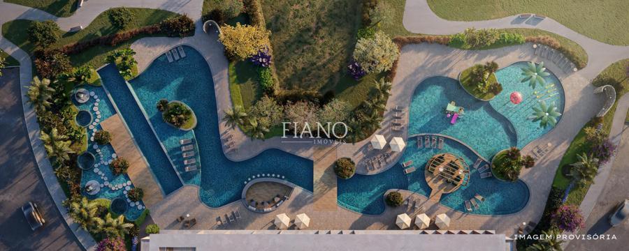 Bar molhado, piscina infantil e adulta, raia com 25 metros, decks e spa.